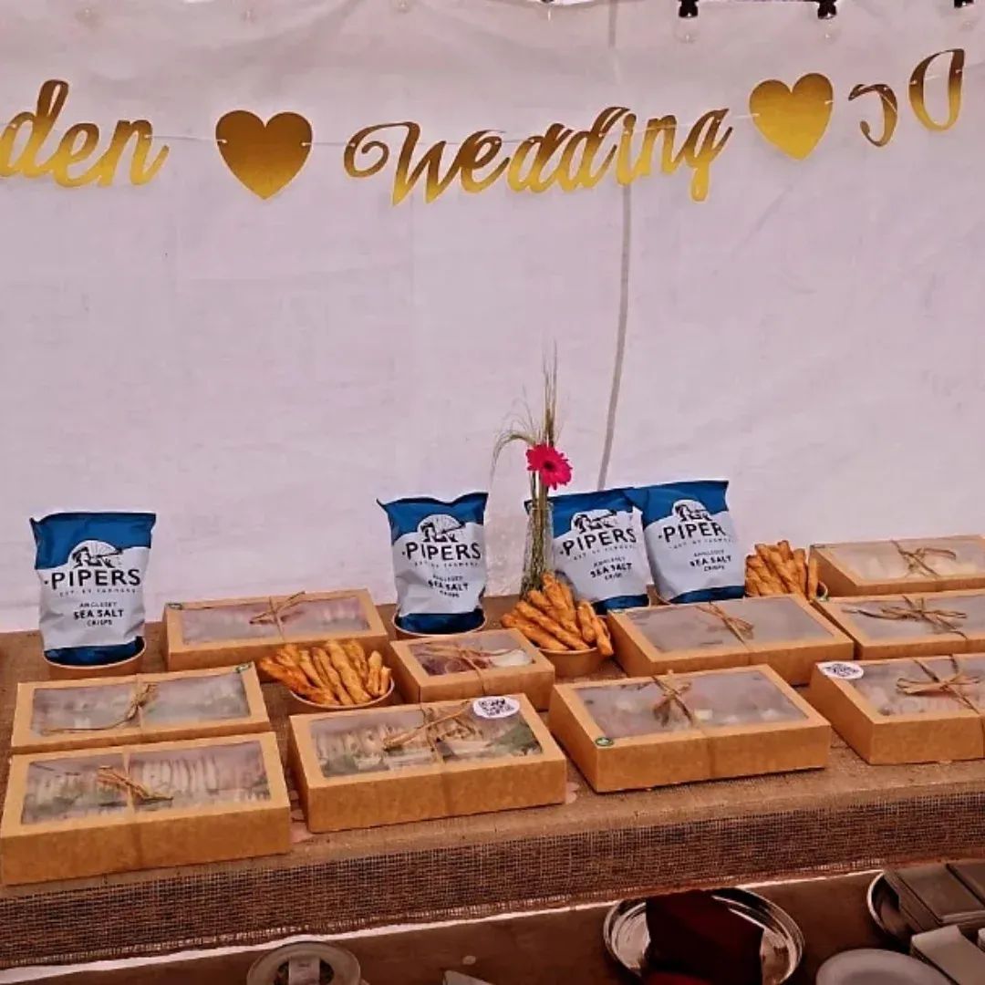 For a charming per-person catering option, our individual picnic boxes are the perfect choice. Each box is generously filled with a variety of delicious homemade food. To complement the boxes, desserts and cheese selections are beautifully presented on sharing platters, included as part of our package. Every box can be tailored to meet all dietary requirements, ensuring every guest is well-fed and satisfied.